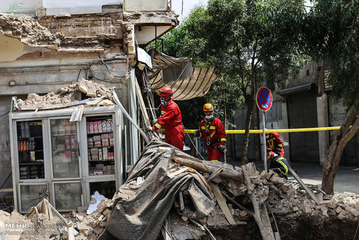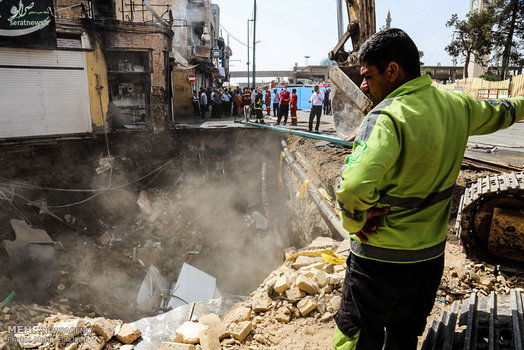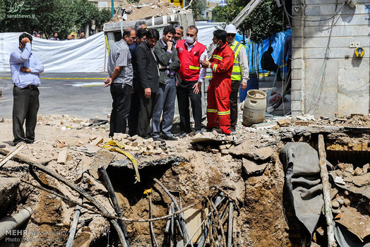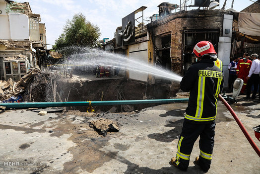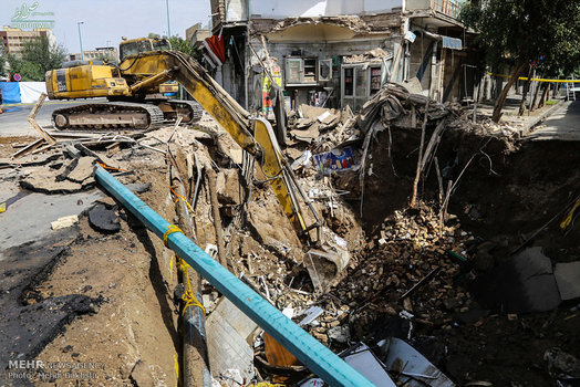 صبح امروز ضلع شمالی میدان مطهری شهر قم در اثر انفجار گاز دچار نشست شد و تعدادی از مغازه ها فرو ریختند.