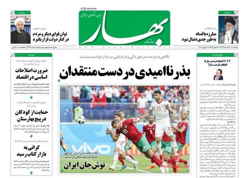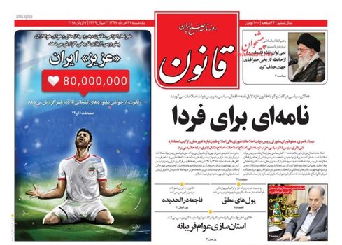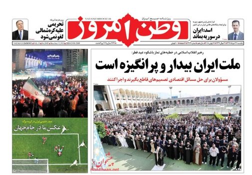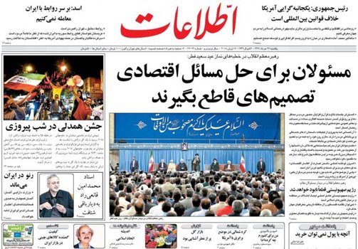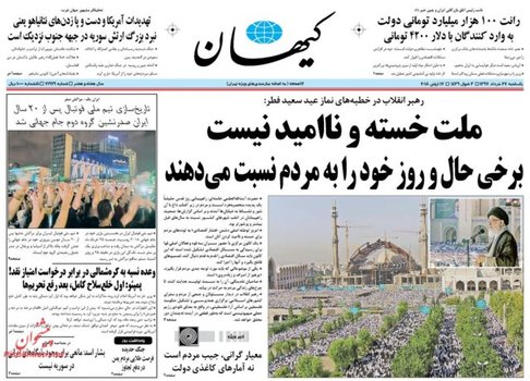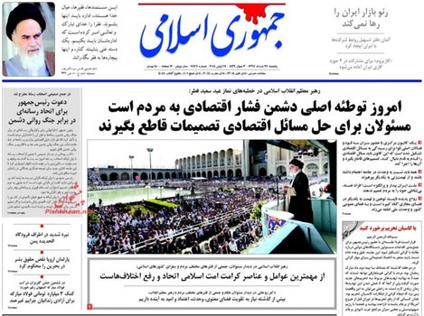 رهبر معظم انقلاب در خطبههای نماز عید فطر: مسوولان برای حل مسائل اقتصادی تصمیمهای قاطع بگیرند، ایران صدرنشین «گروه مرگ شد»، رنو بازار ایران را رها نمیکند و بازار جدید برای سکه طلا از جمله عناوین صفحه اول روزنامههای امروز کشورند.