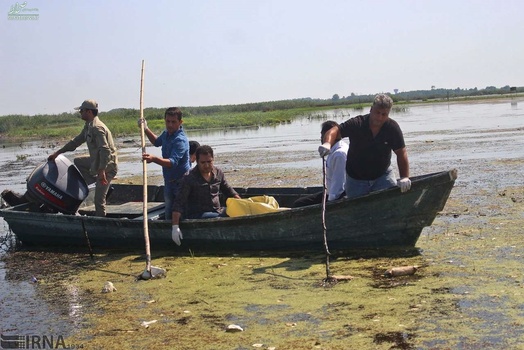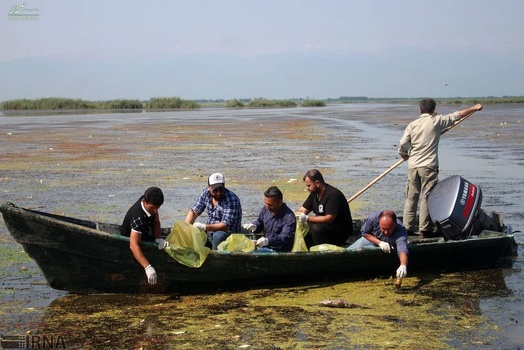 بخشی از تالاب بین المللی انزلی امروز یکشنبه به مناسبت هفته قوه قضائیه، توسط 25 تن از زندانیان داوطلب همیار محیط زیست، از زباله پاکسازی شد.