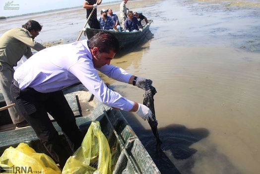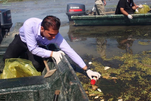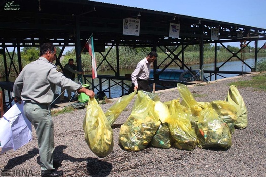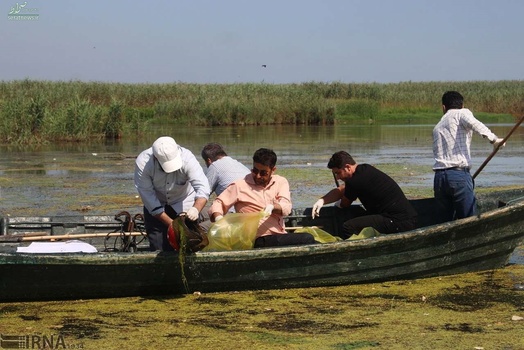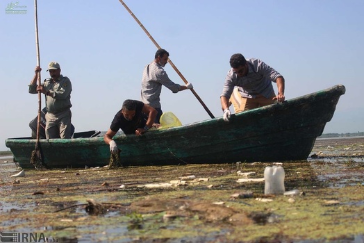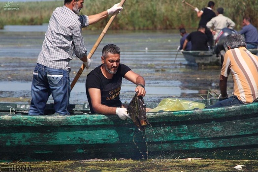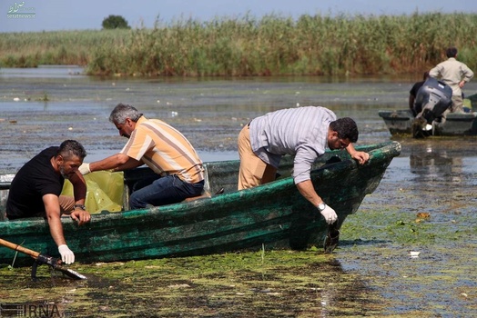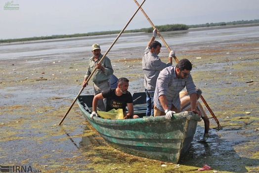 تصاویر / جمعآوری زبالههای تالاب انزلی توسط زندانیان