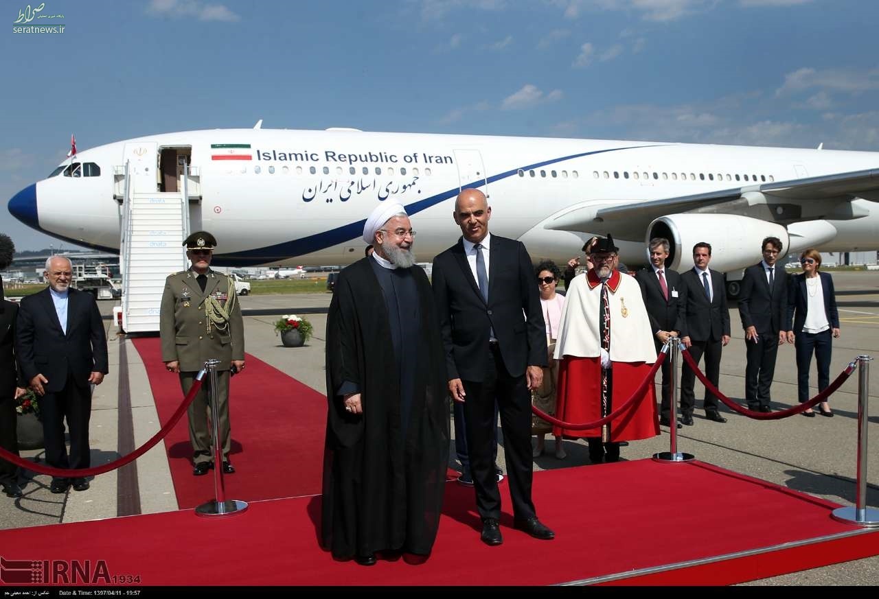 حجت الاسلام و المسلمین حسن روحانی در فرودگاه بین المللی زوریخ مورد استقبال رسمی «الن برسه» رییس جمهوری سوئیس قرار گرفت.