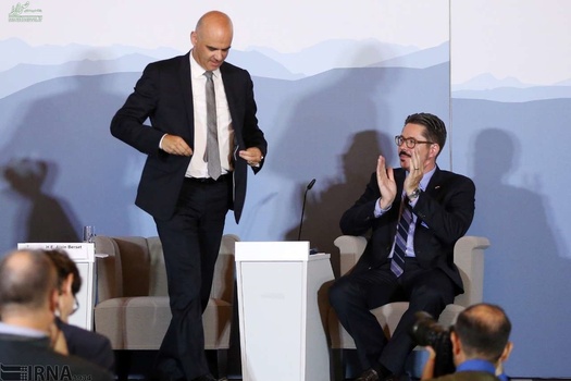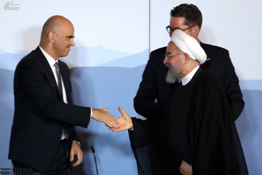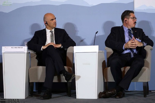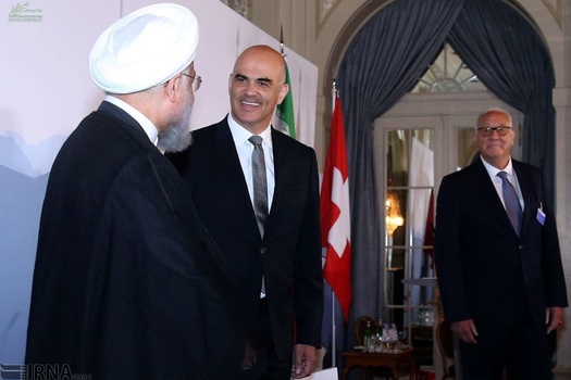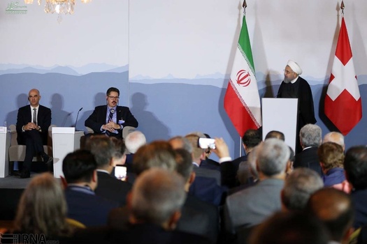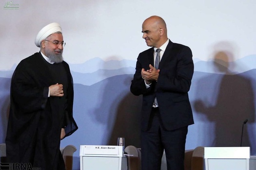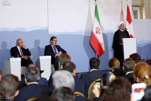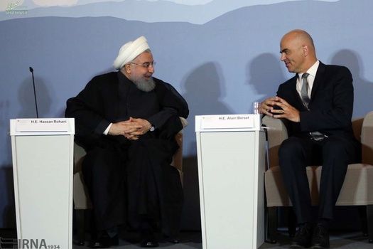 حجت الاسلام والمسلمین حسن روحانی و آلن برسه روسای جمهوری اسلامی ایران و سوئیس امروز سه شنبه در همایش اقتصادی که با حضور فعالان تجاری دو کشور در برن برگزار شد، حضور یافتند.