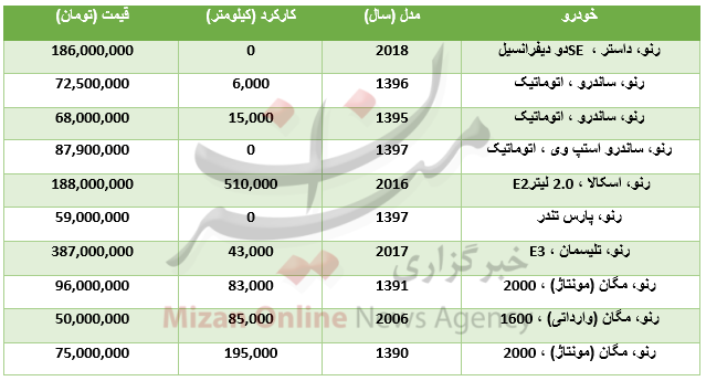 جدول/ برای خرید خودرو رنو چقدر باید هزینه کرد؟