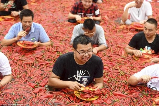 در کشورهای مختلف جهان مسابقات عجیب متعددی برگزار میشود که یکی از عجیبترین و دردآورترین این مسابقات، مسابقه فلفل خوری در چین است. داوطلبان برای شرکت در مسابقه داخل دیگ پر از فلفل رفته و شروع به خوردن فلفلهای تند میکنند. هر شرکتکنندهای که بتواند فلفل بیشتری بخورد برنده مسابقه خواهد شد. شرکتکنندگان اگر از سوزش فلفل در غذاب شوند میتوانند از آب داخل همان استخر بنوشند تا سوزش فلفل التیام یابد.