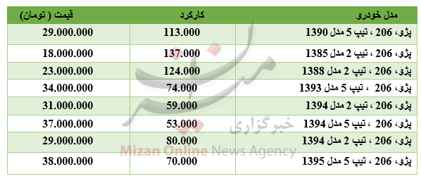 جدول/ برای خرید ۲۰۶ چقدر باید هزینه کرد؟