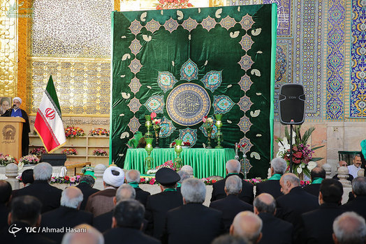 تصاویر/ مراسم تعویض پرچم گنبد و پوشش ضریح حرم مطهر رضوی