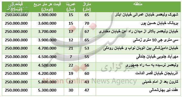 با سرمایه ۲۵۰ میلیون تومانی میتوان برای خرید واحدهای نوساز تا بیش از ۲۰ سال ساخت با متراژ بین ۴۷ تا بیش از ۸۰ متر مربع در مناطق مختلف تهران اقدام کرد.