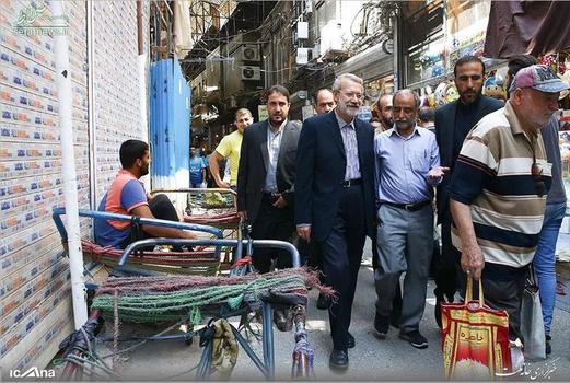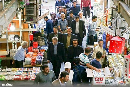 رئیس مجلس شورای اسلامی در حاشیه حضور در مراسم ختم حاج آقا مرتضی تهرانی(ره) که در مسجد جامع چهلستون بازار در بازار بزرگ تهران برگزار شد ، در جمع کسبه بازار حضور یافت و دقایقی به صحبت با آن ها پرداخت.