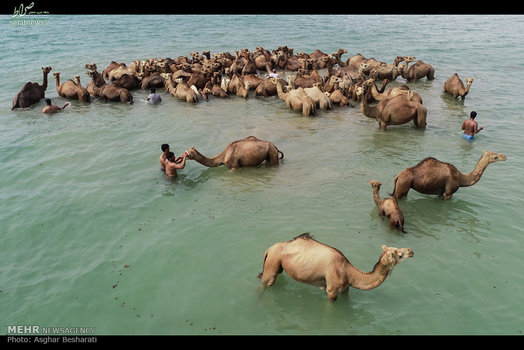 جزیره قشم یکی از جزایر استان هرمزگان است که به‌عنوان بزرگترین جزیره ایران و خلیج‌فارس در تنگه هرمز قرار دارد.این جزیره در چند دههٔ اخیر به یکی از مکان‌های توریستی و گردشگری تبدیل شده‌است. از نقاط دیدنی این جزیره بازارها و دیدنی‌های طبیعی آن چون جنگل‌های حرا، غارهای خوربس، تنگه چاهکوه، دلفین‌های آبی خلیج فارس، دره ستاره‌ها، جزایرناز و غار نمکدان است.در این گزارش نگاهی داریم به شستشوی شترها در ساحل جزیره قشم.