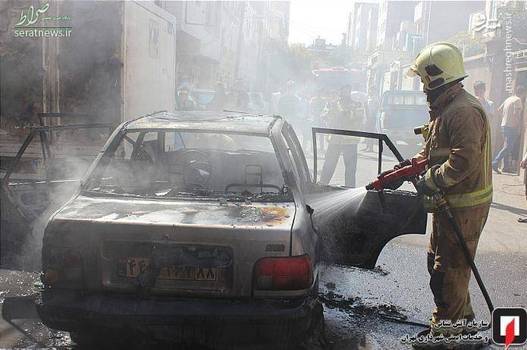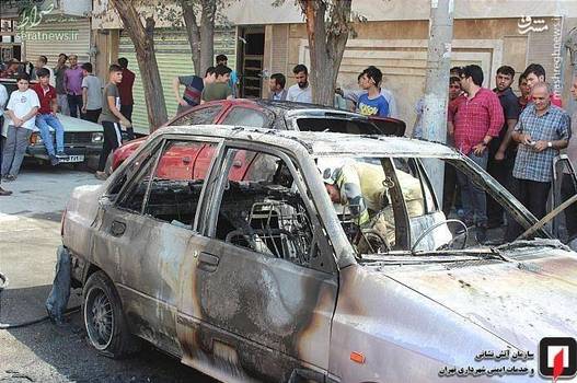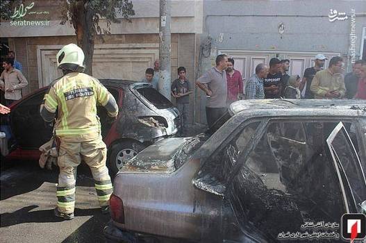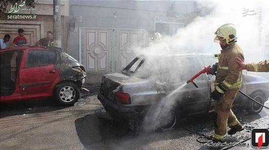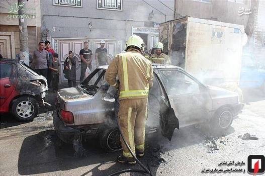 تصاویر/ آتش گرفتن همزمان ۳ خودرو در شهرری