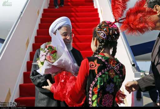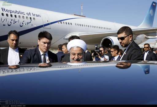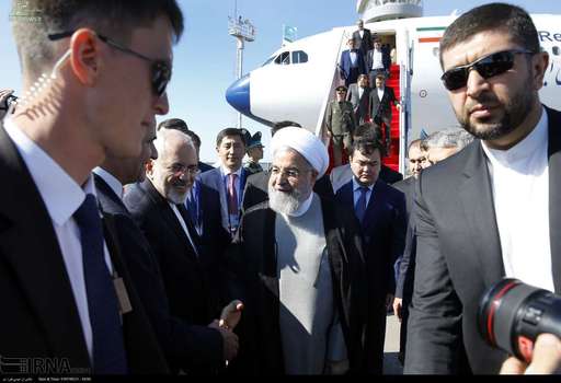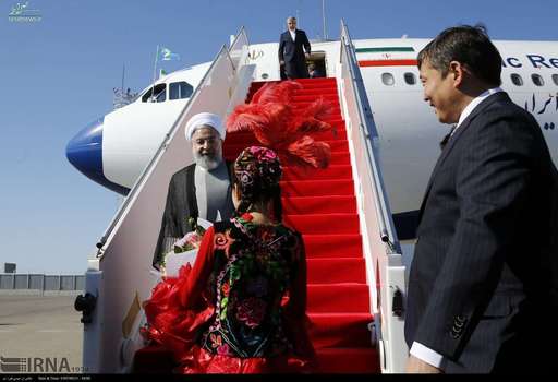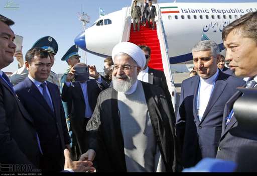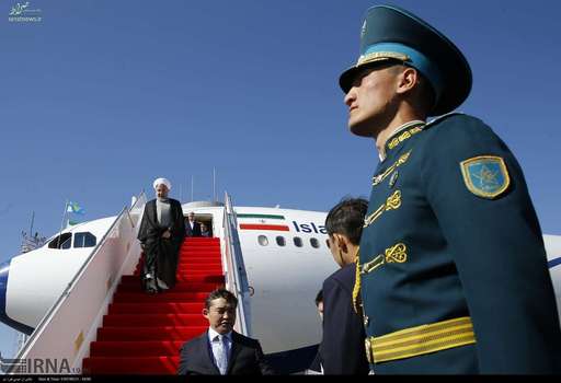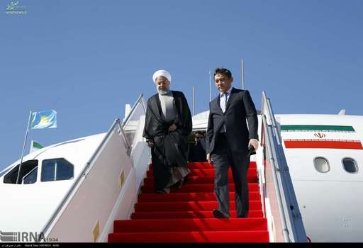 حجتالاسلام والمسلمین حسن روحانی رییسجمهوری امروز یکشنبه برای شرکت در پنجمین اجلاس سران کشورهای ساحلی دریای وارد فرودگاه شهر آکتائو قزاقستان شد و مورد استقبال قرار گرفت.*11*
