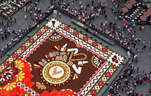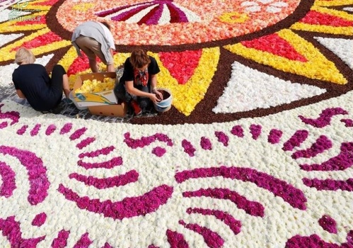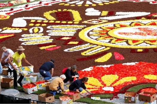 تولیدکنندگان گل بلزیک فرشی از ۵۰۰ هزار گل با وسعت ۱۸۰۰ متر مربع در بروکسل، مقر اتحادیه اروپا، به نمایش درآوردند.