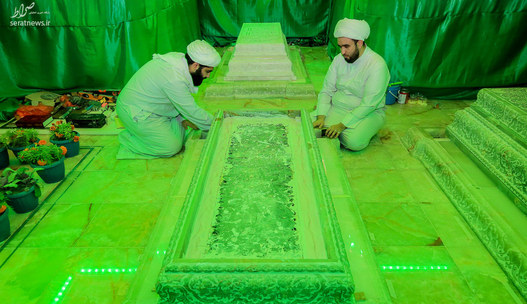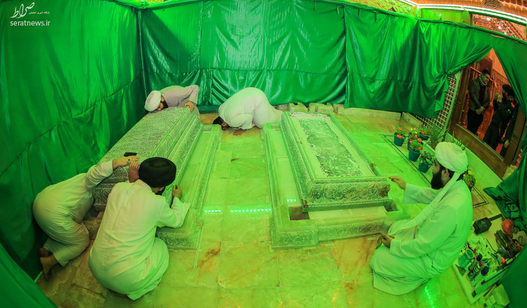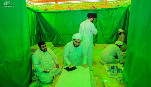 تصاویر/ تعویض مضجع امام هادی و امام حسن عسکری(ع)