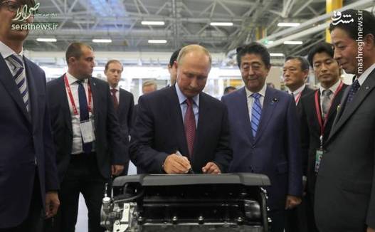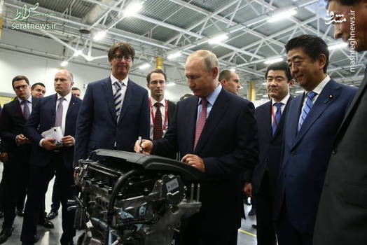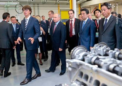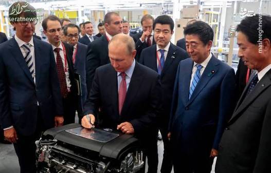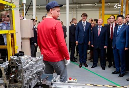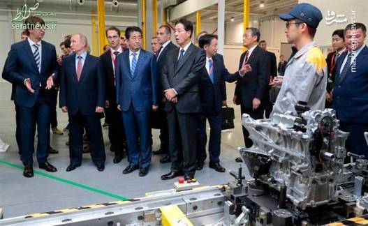 ولادیمیر پوتین رئیس جمهور روسیه و شینزو آبه نخست وزیر ژاپن از یک کارخانه تولید خودروی مزدا در منطقه ولادیوستوک روسیه بازدید کردند.