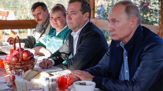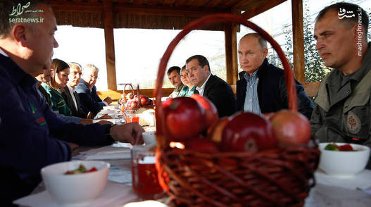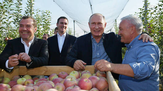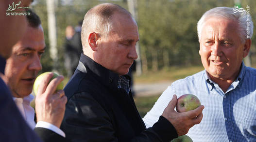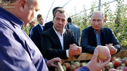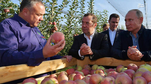 صبح امروز ولادیمیر پوتین و دمیتری مدودف از یک باغ سیب در سرزمین استاوروپول بازدید کردند.
