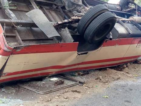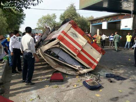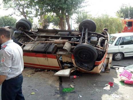 تصاویر/ واژگونی یک مینیبوس با 25 مسافر در تهران