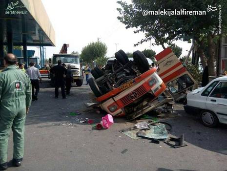 ظهر امروز دراتوبان آوینی تهران یک دستگاه مینیبوس با ۲۵سرنشین پس از برخورد با یک خودرو و تیربرق، واژگون شد. همه سرنشینان مصدوم شدند و حال ۱۵ نفر از آنها وخیم گزارش شده است.
