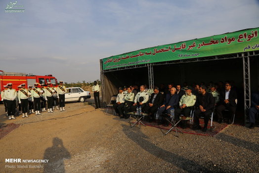 امحاء ۱۷۰۰ کیلوگرم مواد مخدر غیرقابل استحصال عصر امروز با حضور سید مهدی صادقی استاندار، عبدالرضا آقاخانی فرمانده نیروی انتظامی قم، سید محمدرضا هاشمی معاون سیاسی و امنیتی استاندار قم و جمعی از مدیران و فرماندهان نیروی انتظامی استان برگزار شد.