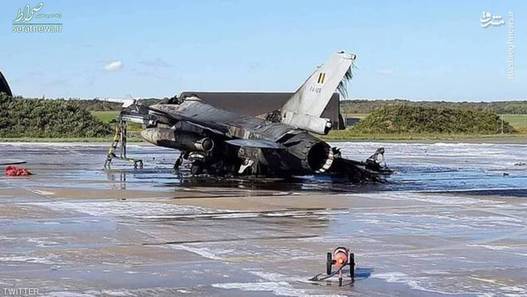 تصاویر/ آتش سوزی جنگنده اف۱۶ در بلژیک