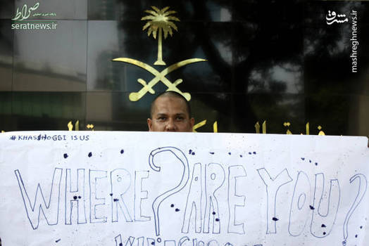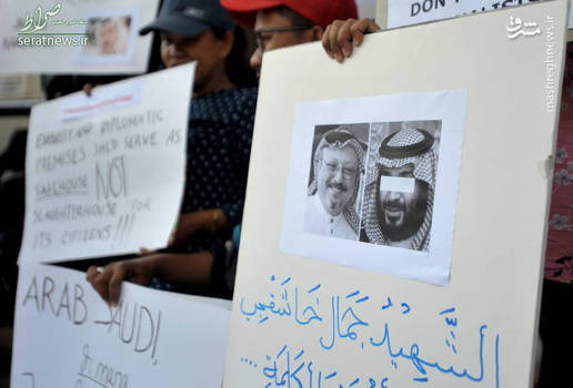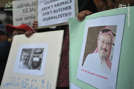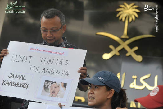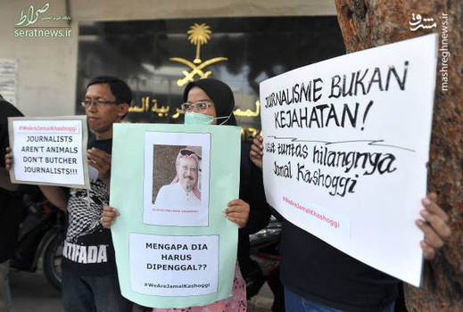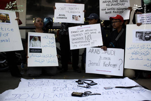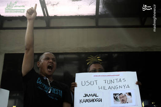 گروهی از خبرنگاران مقابل سفارت عربستان در جاکارتا در اعتراض به ناپدید شدن خاشقجی تجمع کردند.