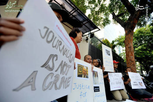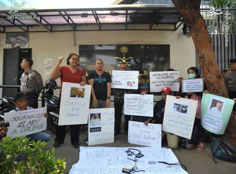 تصاویر/ تجمع اعتراضی خبرنگاران اندونزی مقابل سفارت عربستان