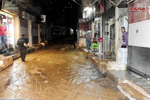 شب گذشته، بارش باران شدید در دمشق سوریه موجب آبگرفتی معابر در برخی نقاط این شهر شد.