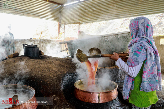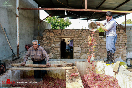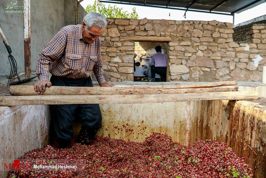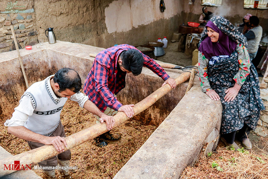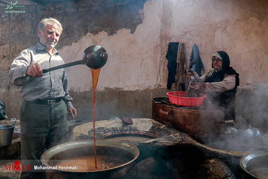 تصاویر/ تولید سنتی شیره انگور در روستای بهارستان سبزوار