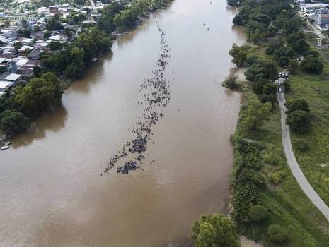 صدها مهاجر از هندوراس با وجود شرایط خطرناک از رود مرزی سوچیاته بین گواتمالا و مکزیک عبور کردند. آن ها می خواهند به مهاجرانی ملحق شوند که قصد دارند خود را از طریق مکزیک به ایالات متحده امریکا برسانند.