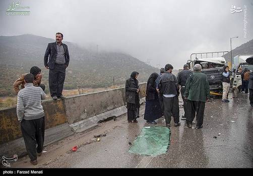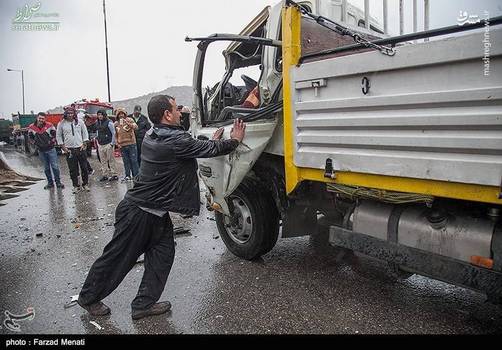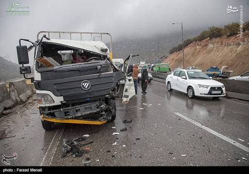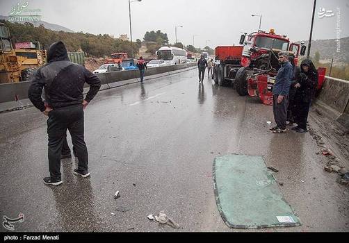 تصاویر/ تصادف زنجیره ای در کرمانشاه