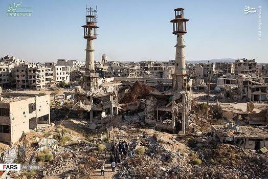 تصاویر پیش رو، وضعت امروز داریا و حرم حضرت سکینه(س) است که دو سال پس از آزادی، چیزی جد تلی از ویرانی و بقایای دو گلدسته این حرم از آن بجا نمانده است.
