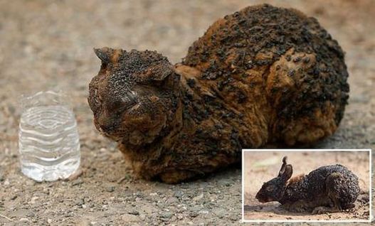 تصویر گربه، خرگوش و دیگر حیوانات سوخته در میان شعلههای آتش گسترده کالیفرنیا بسیار ناراحت کننده است. برخی از این حیوانات در دم جان سپرده و برخی نیز زخمی شده اند و امدادگران در حال درمان و کمک رسانی به این حیوانات هستند.