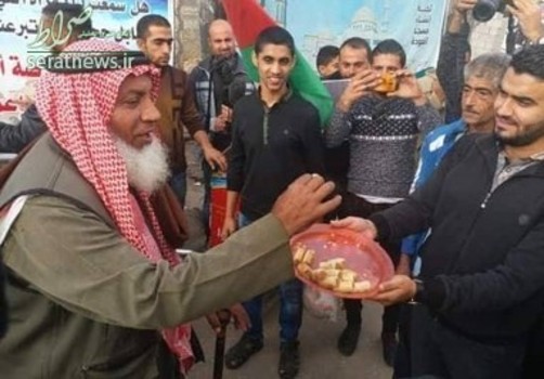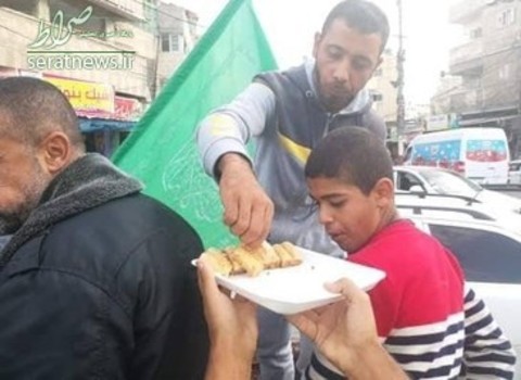 توزیع شیرینی در رفح در نوارغزه پس از استعفای آویگدور لیبرمن وزیر جنگ رژیم صهیونیستی.