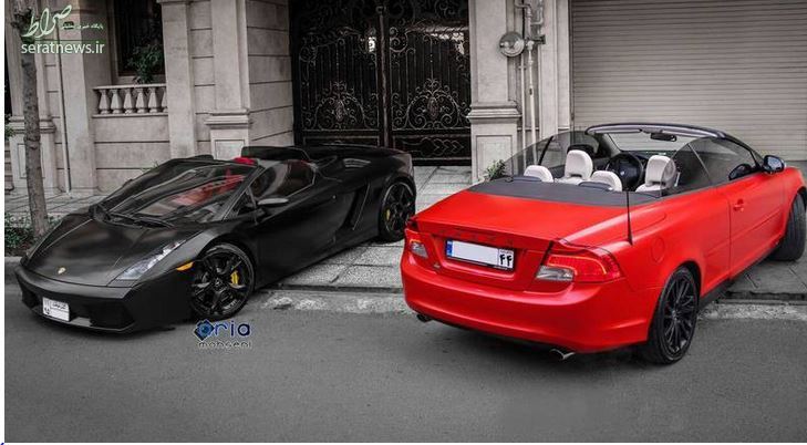 حضور دو خودروی پرطرفدار"Lamborghini Gallardo Spyder" و " Volvo C70" در یک قاب در خیابانهای تهران!