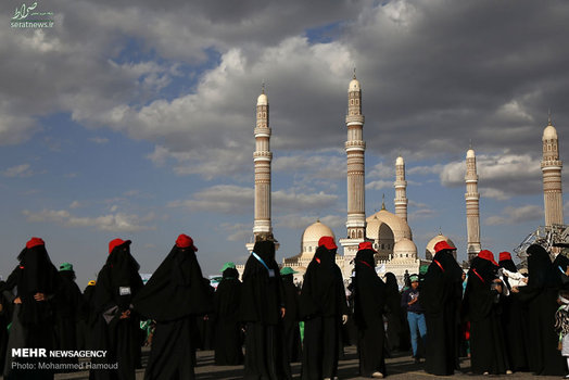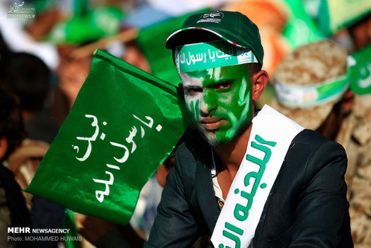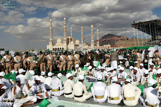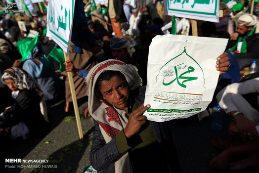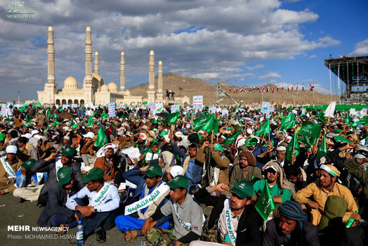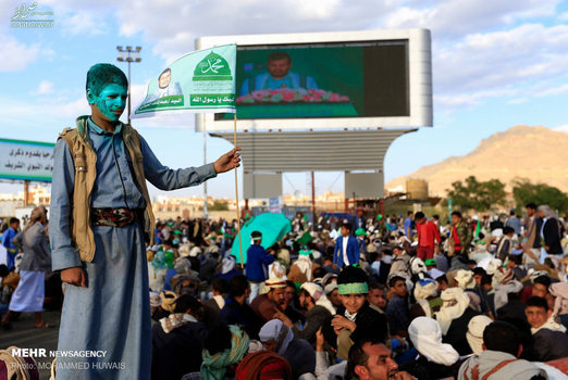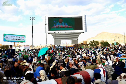 یمنیها روز سهشنبه باحضور گسترده در جشن میلاد پیامبر اکرم(ص)، تصاویر سید عبدالملک الحوثی رهبر انصارالله و پرچمهای سبز و سفید و پلاکاردهایی را که روی آن شعارهای ضد آمریکایی-سعودی درج شد، با خود حمل کردهاند. در این جشن بزرگ رهبر انصارالله یمن سخنرانی کرد.