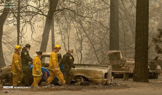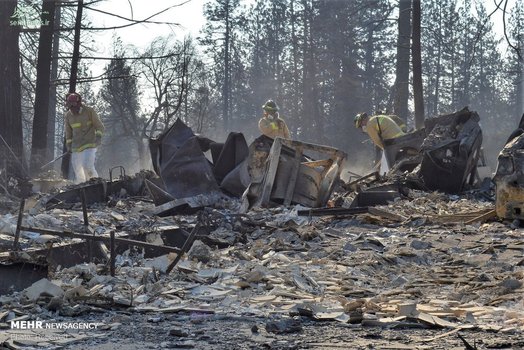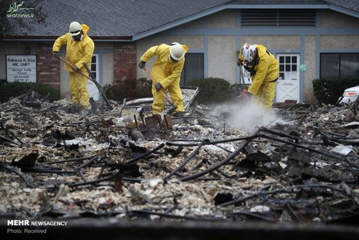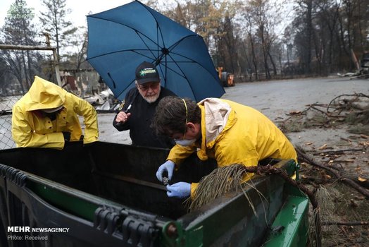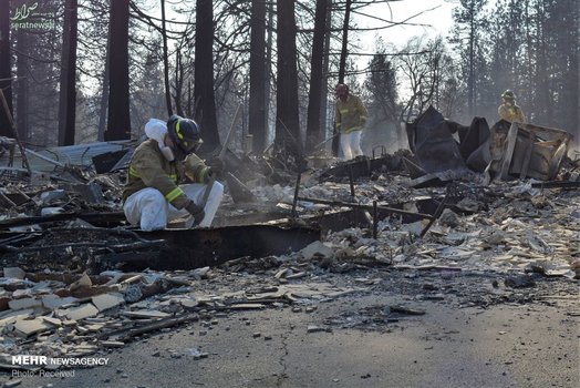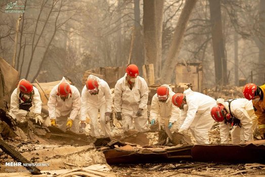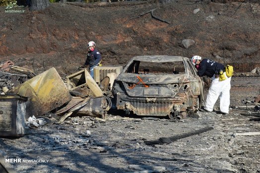 تصاویر/ جستجوی بقایای اجساد قربانیان آتش سوزی کالیفرنیا