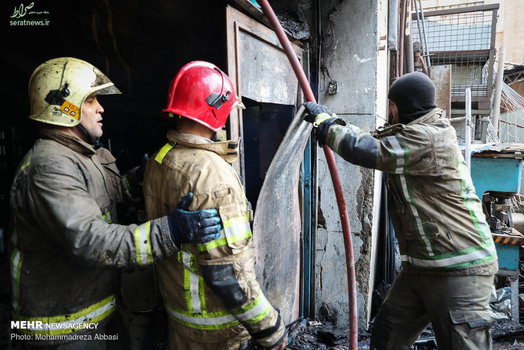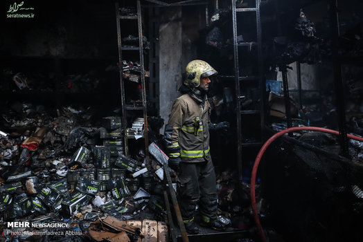 تصاویر/ آتش سوزی در خیابان امیر کبیر تهران
