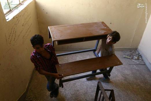 دانش آموزان سوری در شهر رقه در مدارس تخریب شده که از ابتدایی ترین امکانات نیز محروم هستند. جنگ ویرانگر در این شهر در زمان اشغال آن از سوی داعش خسارات زیادی به زیرساخت‌های رقه وارد کرده است.