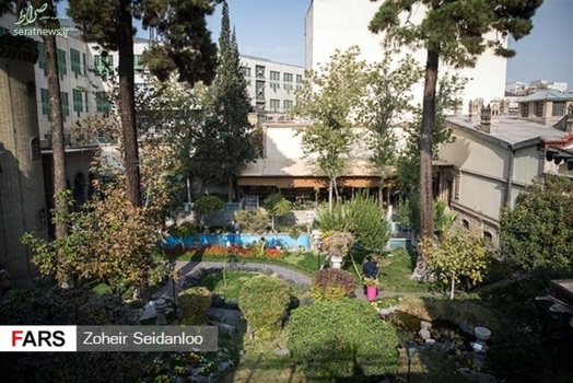 در حیاط اندرونی، محسن مقدم طرح حیاط باغ ایرانی را در دوره پهلوی اجرا میکند، در واقع شکل و شمایل حیاط نوع دیگری بوده است، اما وی حیاط ایرانی را که چهار باغچه به نشان چهار باغ ایرانی در اطراف و یک حوض در وسط است اجرا میکند که این طرح در فرشهای ایرانی هم دیده میشود، اما در قسمت بیرونی، طرح باغ ژاپنی را اجرا کرده است که در حضور ماهی قرمز و نیلوفر آبی را میبینید.