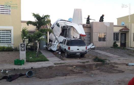 تصاویر/ سقوط هواپیما در منطقه مسکونی مکزیک