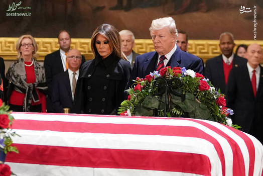 تصاویر/ ادای احترام ترامپ به جنازه جرج بوش پدر