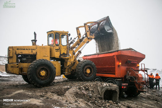 با بارش برف و کولاک در جاده های مواصلاتی استان آذربایجان شرقی، تلاش راهداران برای برفروبی و نمک پاشی جاده ها ادامه دارد.
