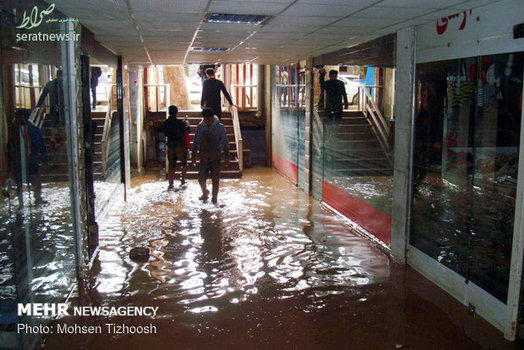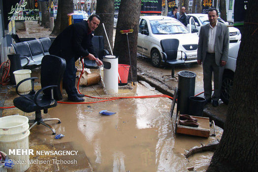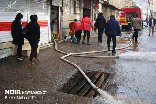 بالا آمدن آب رودخانه بر اثر بارش باران باعث ورود آب به منازل و اماکن تجاری در برخی نقاط خرم آباد شد.