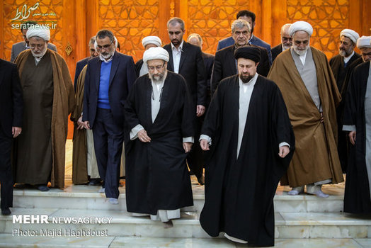 آیت الله آملی لاریجانی رئیس قوه قضائیه و مسئولان عالی قضایی عصر سه شنبه ۱۶ بهمن ماه ۱۳۹۷ با حضور در حرم امام خمینی (ره) با آرمانهای امام (ره) و انقلاب اسلامی تجدید میثاق کردند.
