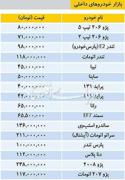 تازه ترین قیمت خودروهای داخلی/پارس تندر100میلیون
