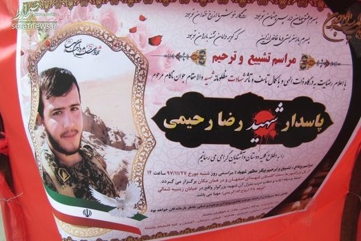 پیکر شهید پاسدار «رضا رحیمی» جوانترین شهید مدافع حریم امنیت با حضور سرلشکر جعفری فرمانده کل سپاه ، خانواده و مردم این منطقه به سمت حرم حضرت زینب بنت موسی بن جعفر (ع) تشییع شد.
