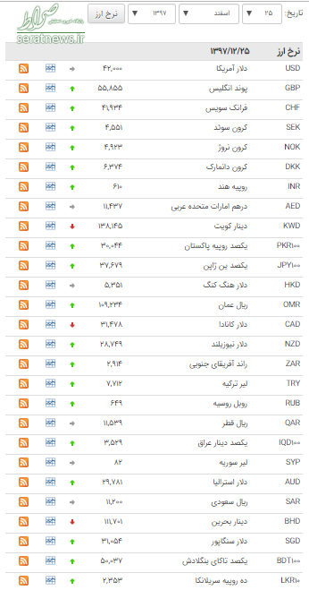 نرخ ۴۷ ارز بین بانکی امروز در حالی از سوی بانک مرکزی اعلام شد که قیمت ۱۰ ارز همچون یوان چین با کاهش، ارزش ۱۱ ارز، چون دلار بدون تغییر و ارزش ۲۶ ارز جچون پوندو یورو با رشد قیمت مواجه شده است.