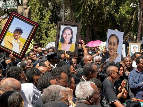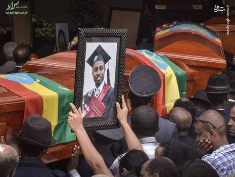 تشییع جنازه قربانیان حادثه سقوط یک فروند هواپیمای مسافربری شرکت خطوط هوایی اتیوپی که به مرگ 157 سرنشین آن منجر شد، امروز در آدیس آبابا، پایتخت این کشور برگزار شد.