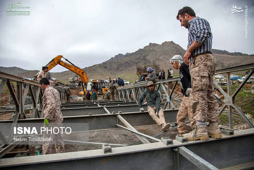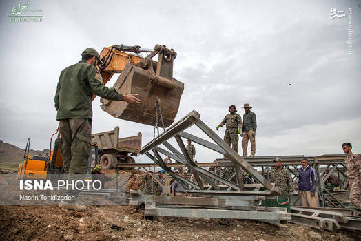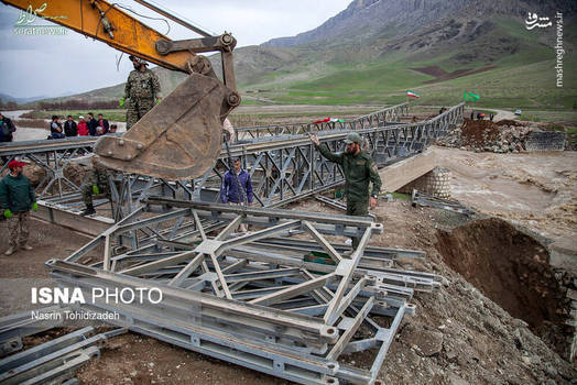 تصاویر/ احداث پل اضطراری توسط سپاه در مناطق سیلزده