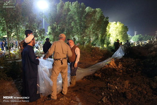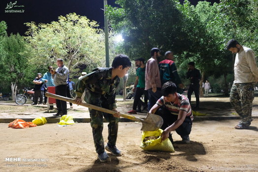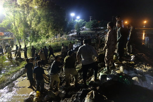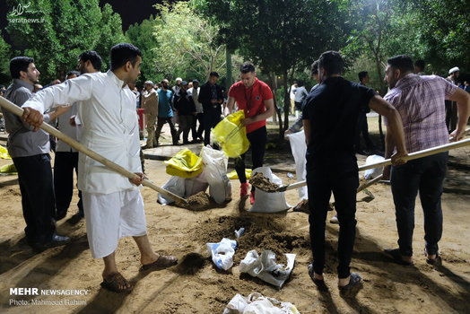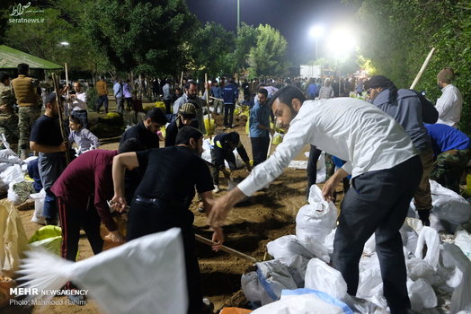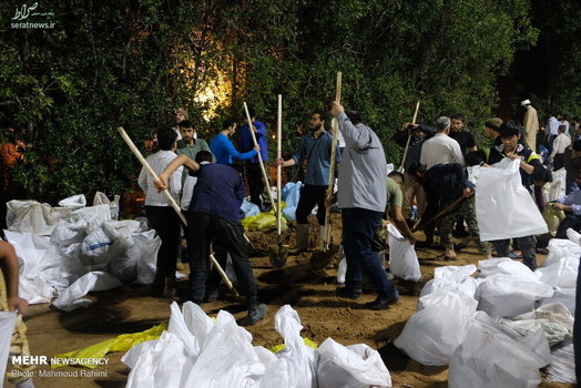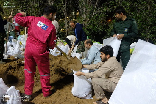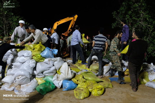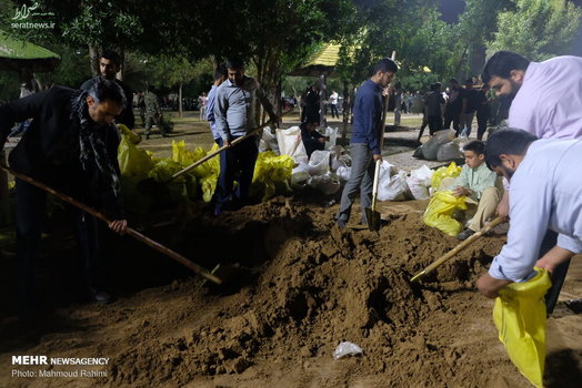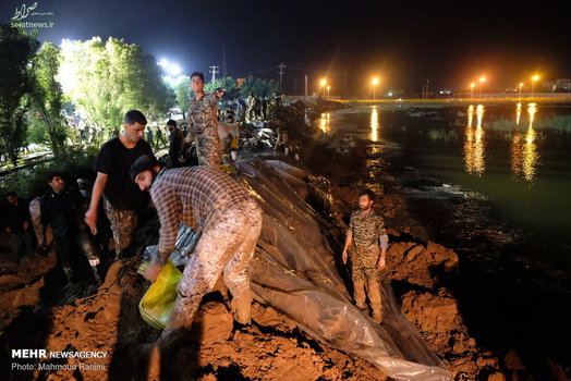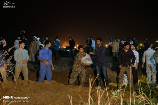تلاش شبانه روزی نیروهای مردمی و امدادی برای ساخت و ترمیم سیل بند در نقاط مختلف شهر اهواز ادامه دارد.