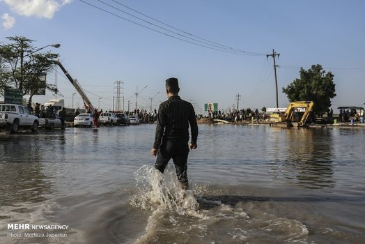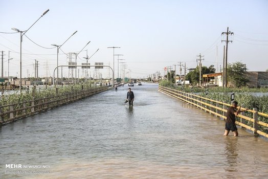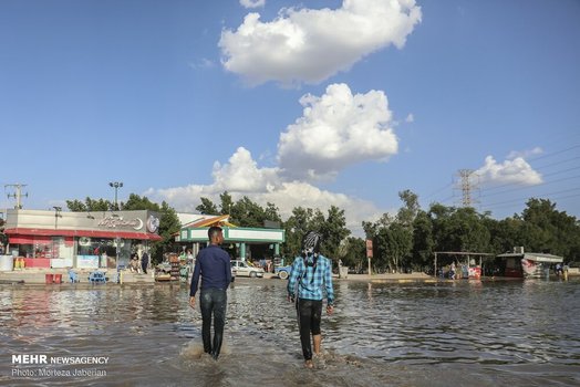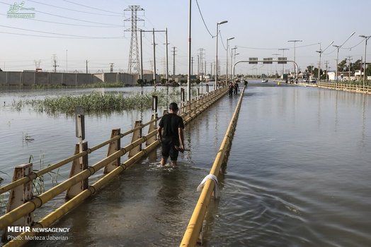 سیلاب با پیشروی آب رودخانه کرخه از سمت اندیمشک به ورودی شهر اهواز رسید.